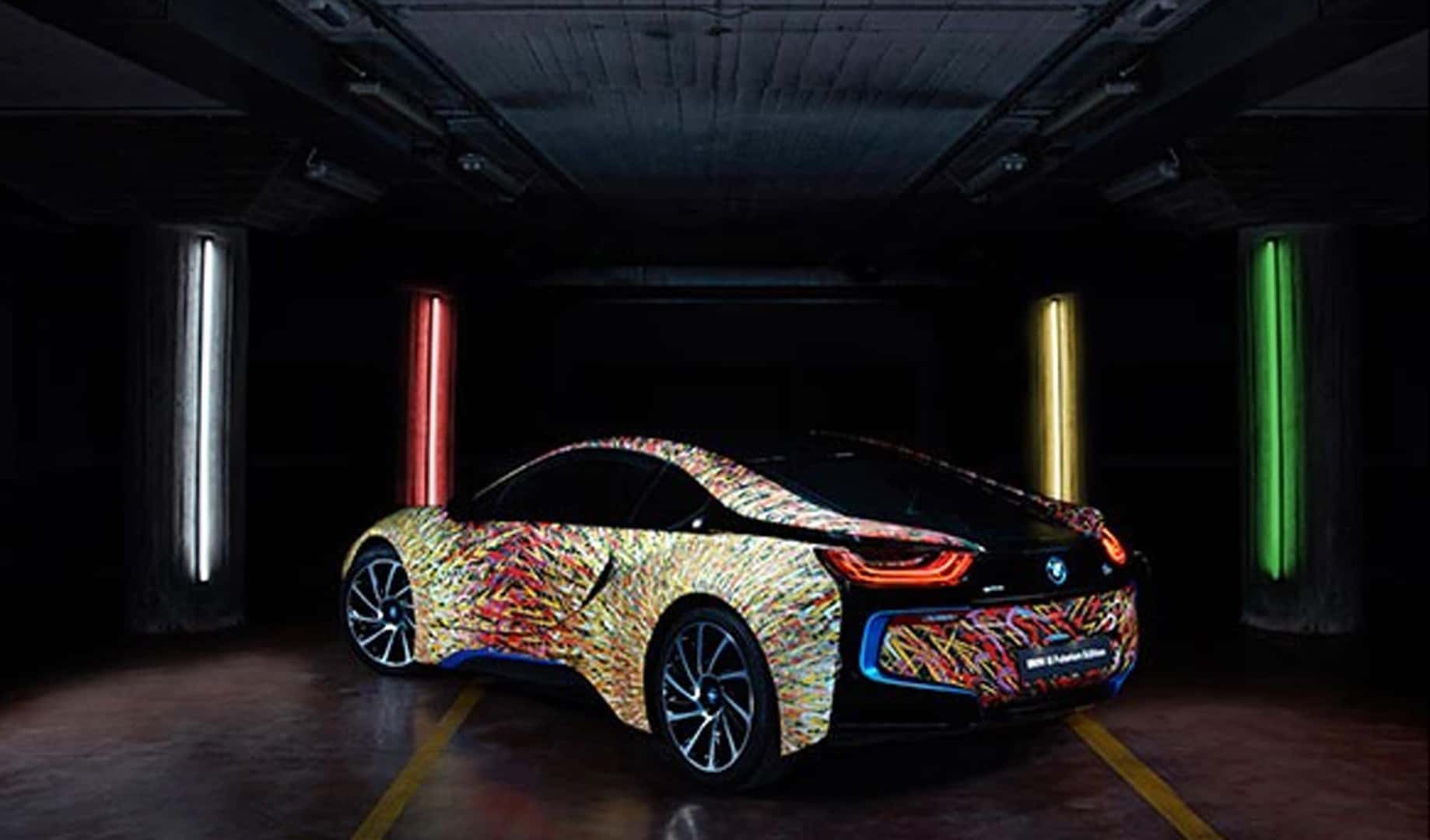 “Lampada ad Arco”, the work of Giacomo Balla, is replicated on the car. The original painting hangs in the Museum of Modern Art in New York. It represents a street lamp powered by electricity under moonlight. The revolutionary color technique and the advent of electricity in the 1900s are strictly linked to the future technology of the BMW i8.