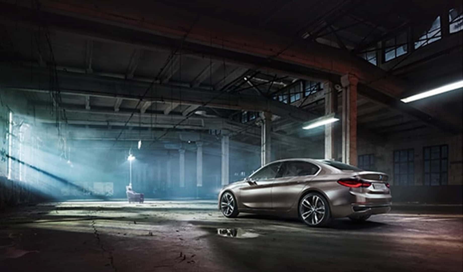 The designers have emphasised the width of the slim front end and ensured it picks up the sporting baton from the car’s flanks. Its signature kidney grille and eye-catching twin circular headlights instantly identify the BMW Concept Compact Sedan as a BMW. The familiar form of the kidneys and their size convey the car’s distinctive character: a seamless fusion of agility, sportiness and elegance. The hexagonal, dynamically “sawn-off” twin circular LED headlights on either side point inwards towards the kidney grille, creating a visual link between the kidneys and headlights that lends the car a purposeful look. The V-shaped central air intake is the starting point for a pervading design theme which splits the lower section of the front end into three sections and gives it a broader appearance. Surfaces merging into one another and stacked in different layers, and the interplay of those levels, lend extra depth and dynamism to the design.