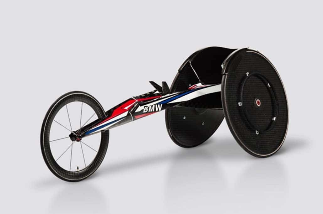 Developed by world-class designers and engineers, the new racing wheelchair draws upon the aesthetics and engineering of the automaker’s signature vehicle design. Encompassing BMW’s core competencies and fundamentals, the wheelchair features modernized aerodynamic efficiencies, carbon fiber material, a complete chassis redesign and a personalized approach for customized athlete fit.
